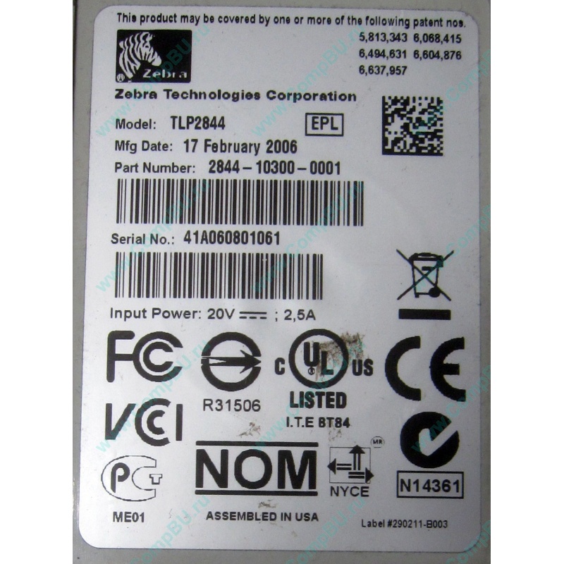 Термопринтер Zebra TLP 2844 (без БП!) - Шатура Изображение большего размера