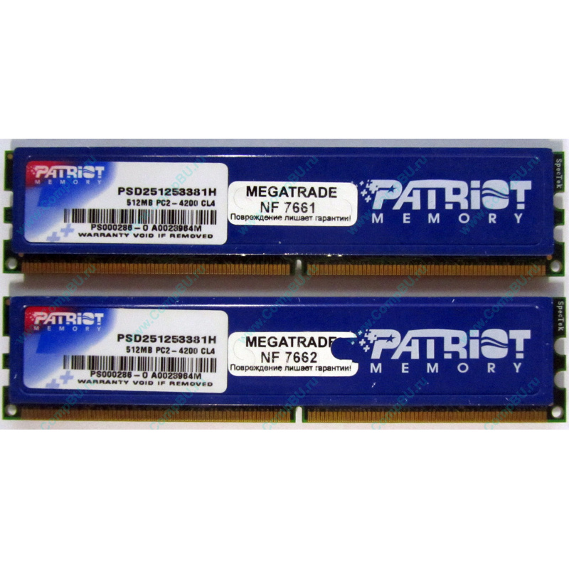 Модули памяти 2шт x 512Mb DDR2 Patriot PSD251253381H pc4200 533 MHz CL 4 с синим радиатором. Цена указана за обе планки!